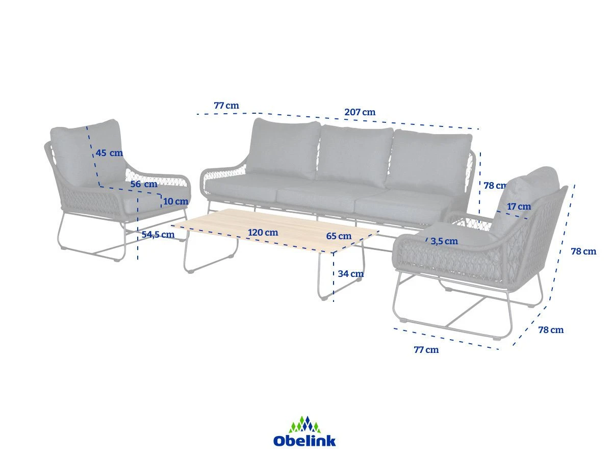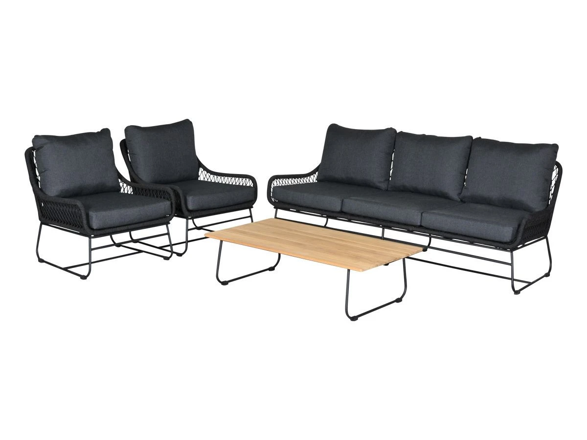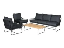Elegant vlechtwerk, stabiele zit en een stijvolle teak koffietafel. Dat is de Janeiro loungeset van Outdoor Feelings. De set bestaat uit een royale 3-zits bank, 2 stoelen en een koffietafel.