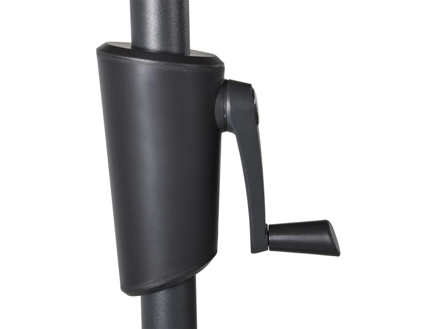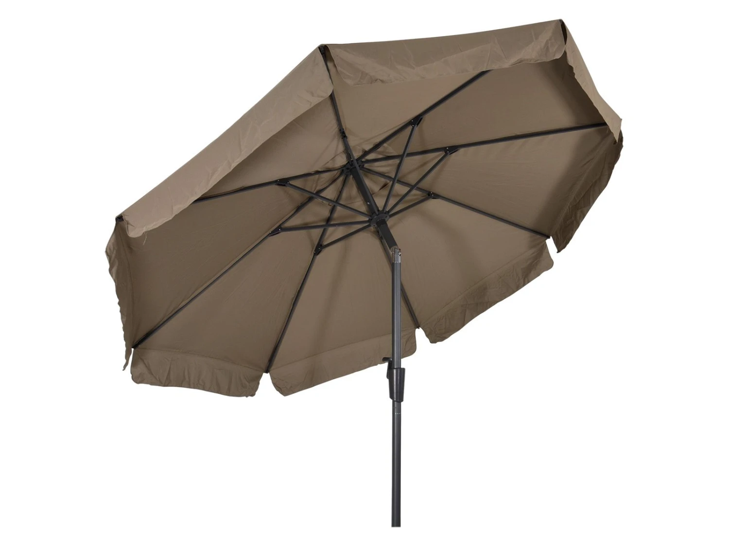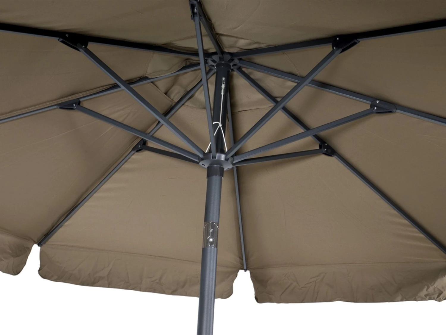 De Senna heeft een frame van aluminium en acht metalen baleinen. En met het draaimechanisme draai je de parasol heel eenvoudig open en dicht. Deze parasol wordt geleverd zonder parasolvoet!