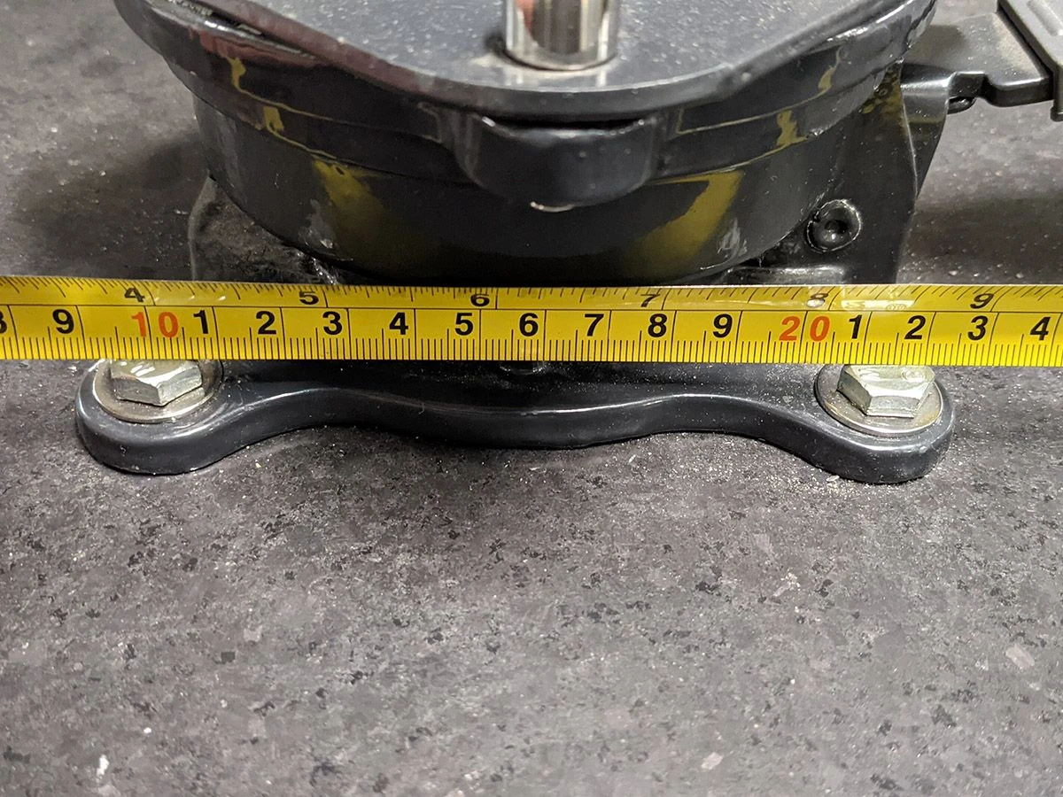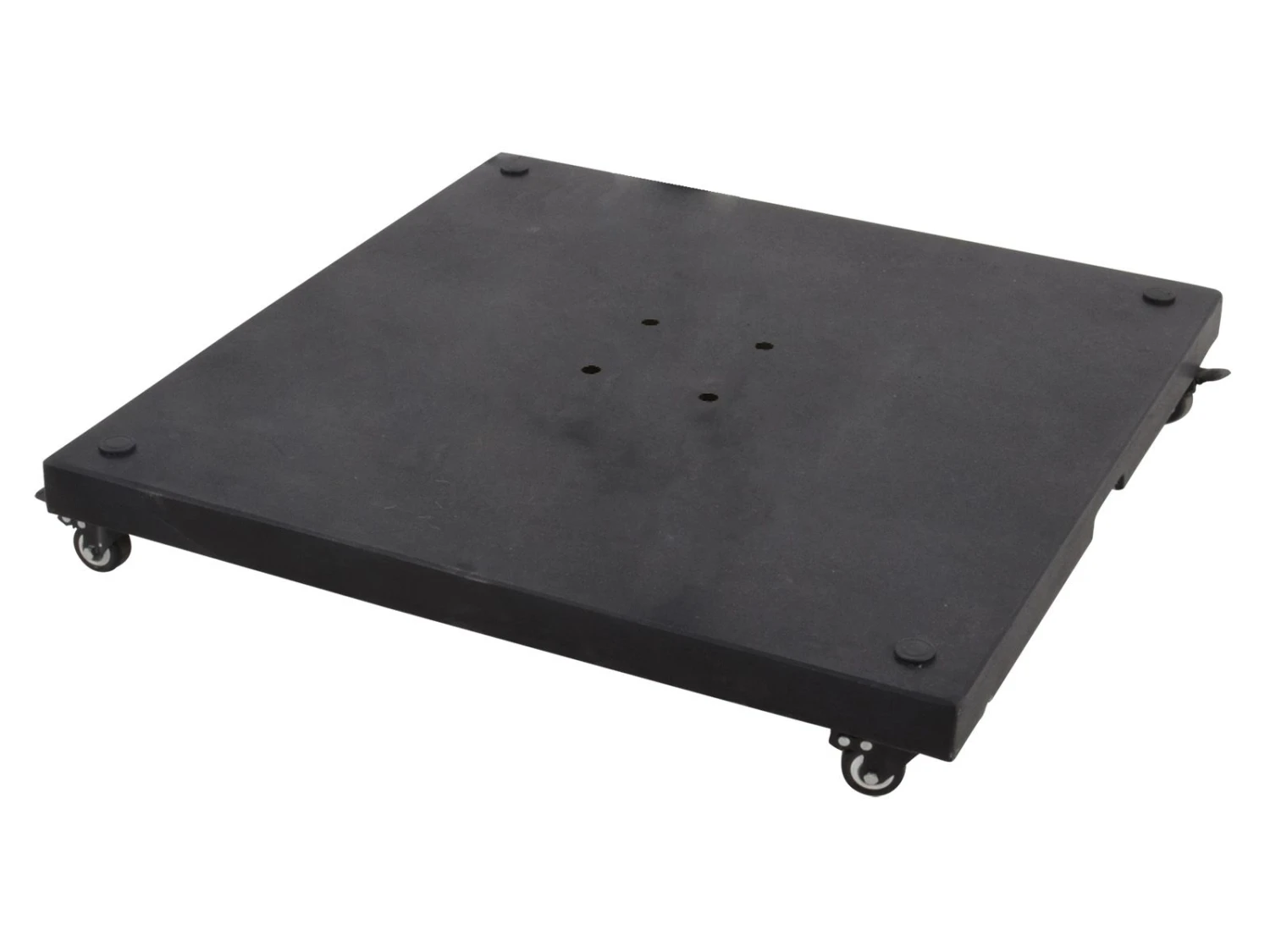 Deze parasolvoet is van beton en weegt ongeveer 90 kg. De diagonale afstand tussen de bevestigingsgaten zijn 16 cm.