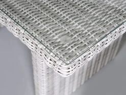 De ruime bank heeft een afmeting van ongeveer 90 x 180 x 100 cm met een zithoogte van ongeveer 46 centimeter. De afmeting van de tafel met glasplaat is ongeveer 80 x 140 x 70 cm. Het frame bestaat uit aluminium, afgewerkt met kunststof wicker. Dankzij deze materialen is de Vicente grande geheel weerbestendig en kan de set gewoon buiten blijven staan. Berg de kussens op in een kussenbox of een tas. De kussens zijn gemaakt van hoge kwaliteit olefin. Olefin is duurzaam, vuilafstotend en zal niet verkleuren. De kussens zijn voorzien van een rits waardoor de hoezen met de hand te wassen zijn. Maak gebruik van een loungesethoes om de set nog langer mooi te houden.