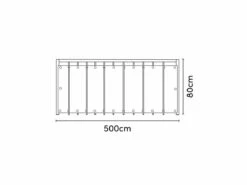 Het balkondoek heeft een afmeting van 500 x 80 cm en heeft elke 50 cm een oog. Er worden tiewraps meegeleverd, zodat het doek eenvoudig aan het balkonhek bevestigd kan worden.