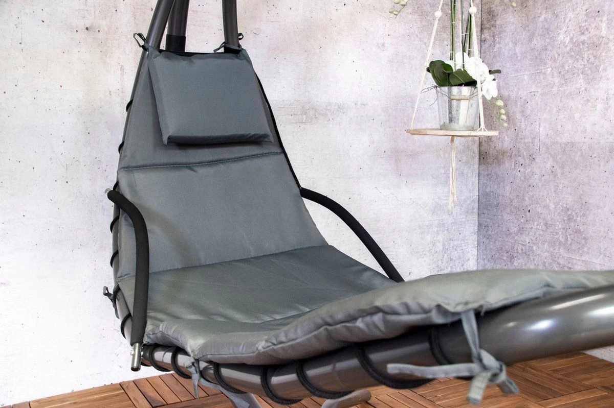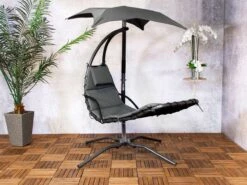Deze hangstoel Honolulu is een relaxte en modern vormgegeven stoel voor in de tuin of op het terras. De hangstoel biedt u de ultieme gelegenheid om te relaxen na een drukke dag of om ontspannen een boek te lezen. De stoel krijgt door het zwarte frame en het grijze kussen een stijlvolle uitstraling welke niet zal misstaan op uw terras. De hangstoel, ook wel zweefstoel genoemd, is voorzien van een schaduwdoek waardoor u altijd beschermd bent tegen de warmte van de zon.In de stoel kunt u genieten van een goed boek, even een dutje doet of gewoon even schommelen, alles is mogelijk. Door de prachtige uitstraling van de stoel is hij alleen al om naar te kijken een aanwinst voor uw tuin! Geniet van de heerlijke zomerdagen in deze comfortabele hangstoel Honolulu antraciet.Specificaties schommelstoel: -Afmetingen: 200 x 140 x 175 cm-Zithoogte: 58 cm-Armleuning hoogte: 74 cm-Materiaal frame: gepoedercoat metaal-Kleur frame: antraciet-Kleur kussen/schaduwdoek: Grijs-Gewicht: 34 kg