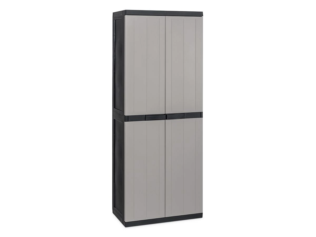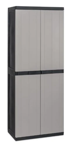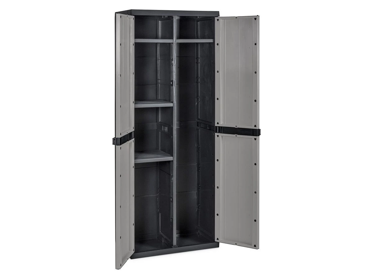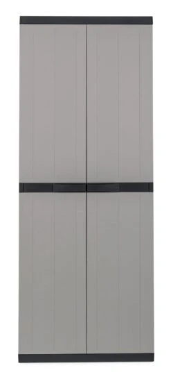 Kenmerken-Geschikt voor binnen (en buiten overdekt)-Spatwaterdicht-Opbergplanken zijn verstelbaar-Geschikt voor bezems en andere lange voorwerpen-draaggewicht per plank: 15 kg-Kan worden vastgemaakt aan de muur-Kan op slot worden gedaan-65x37x165 cm (LxBxH)-Afmeting binnenmaat 60,5 (breedte) x 31,5 (diepte) x 164,5 (hoogte) cm