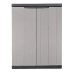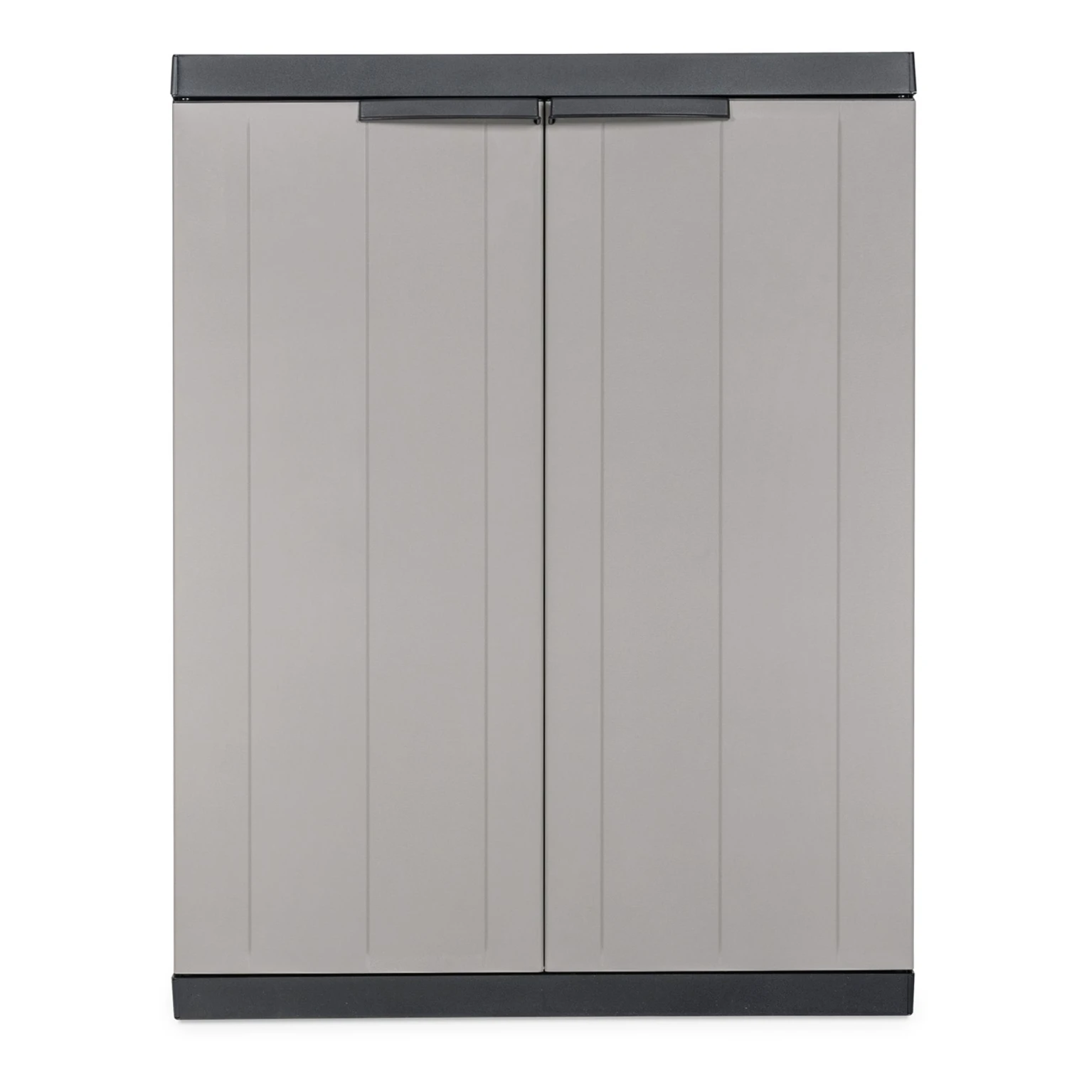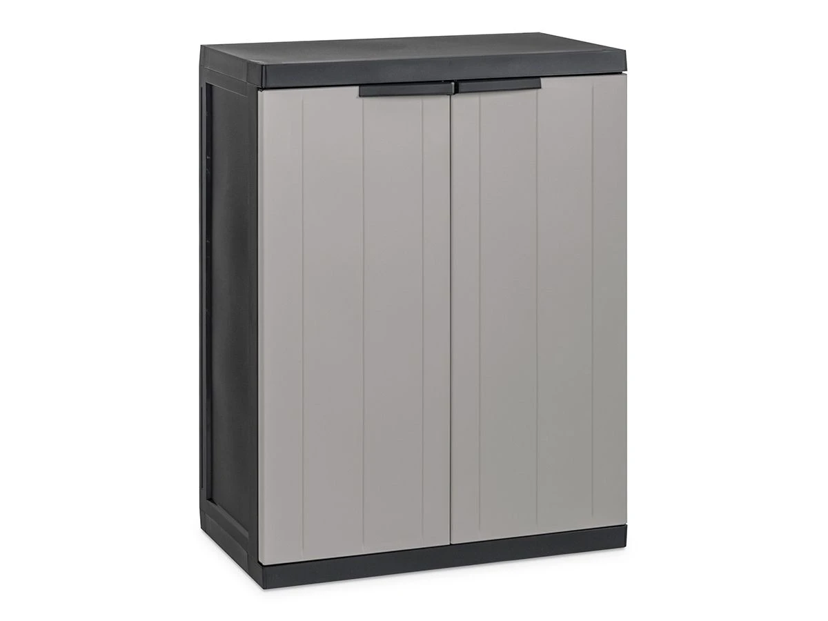 Toomax Bios Midi opbergkast laag – lichtgrijs/antracietDe Toomax Bios Midi opbergkast laagis de perfecte oplossing voor het opbergen van kussens, tuinaccessoires en andere spullen in je tuin of in je garage. Deze stijlvolle en multifunctionele opbergkast biedt een combinatie van gebruiksgemak, duurzaamheid en een aantrekkelijk ontwerp. De opbergkast beschikt over een hangslotvoorziening zodat je de box volledig kan afsluiten. (hangslot niet meegeleverd). Deze opbergkast heeft 1 plank waar je 20 kg op kunt plaatsen.