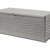 Toomax Dolomiti opbergbox 970 liter – grijsDe Toomax Dolomiti opbergbox is de perfecte oplossing voor het opbergen van kussens, tuinaccessoires en andere spullen in je tuin of op je terras. Deze stijlvolle en functionele opbergbox biedt een combinatie van gebruiksgemak, duurzaamheid en een aantrekkelijk ontwerp. Door het grote volume van 970 liter is er genoeg plek voor het opbergen van bijvoorbeeld tuinkussens of verschillende soorten tuingereedschap. De opbergbox beschikt over een hangslotvoorziening zodat je de box volledig kan afsluiten. (hangslot niet meegeleverd).