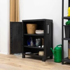 Toomax Garage Midi opbergkast laag – AntracietDe Toomax Garage Midi opbergkast laagis de perfecte oplossing voor het opbergen van kussens, tuinaccessoires en andere spullen in je tuin of in je garage. Deze stijlvolle en multifunctionele opbergkast biedt een combinatie van gebruiksgemak, duurzaamheid en een aantrekkelijk ontwerp. De opbergkast beschikt over een hangslotvoorziening zodat je de box volledig kan afsluiten. (hangslot niet meegeleverd). Deze opbergkast heeft 1 plank waar je 20 kg op kunt plaatsen.Makkelijk in gebruik