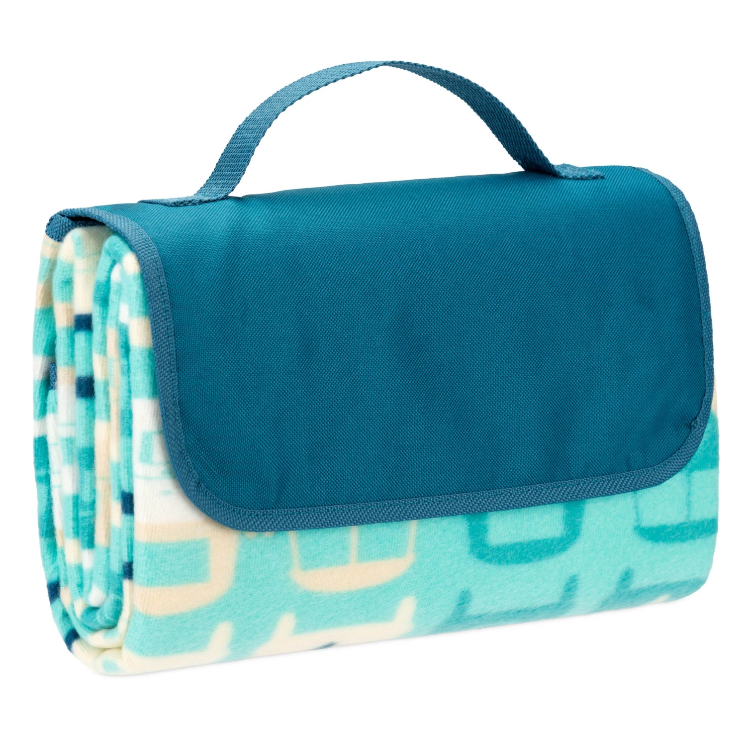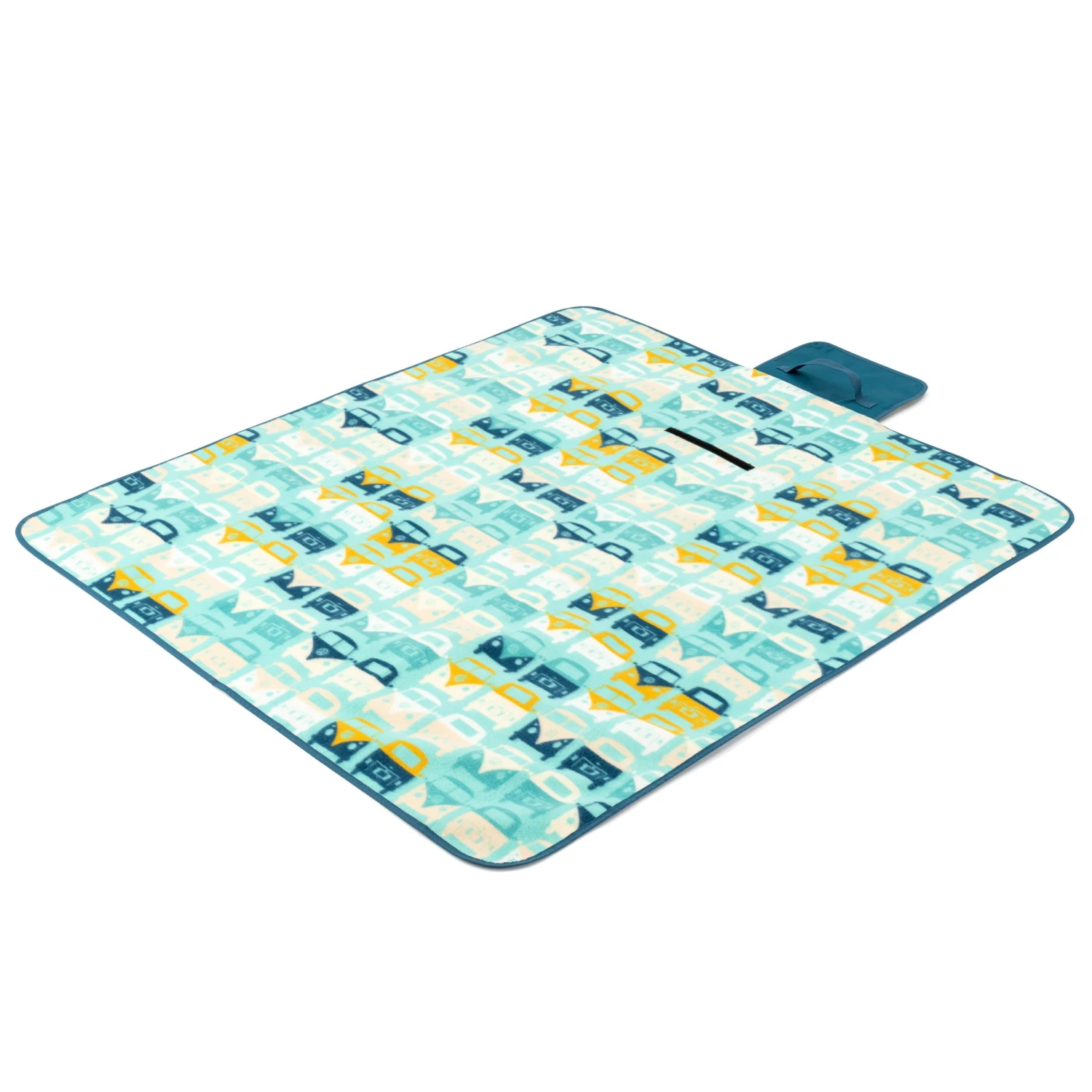 Deze mat heeft een afmeting van 135 x 120 cm en is voorzien van een waterafstotende onderkant. De mat is opvouwbaar en voorzien van een geïntegreerd handvat. In opvouwbare vorm is de mat nog slechts 32 x 12 x 17cm groot.