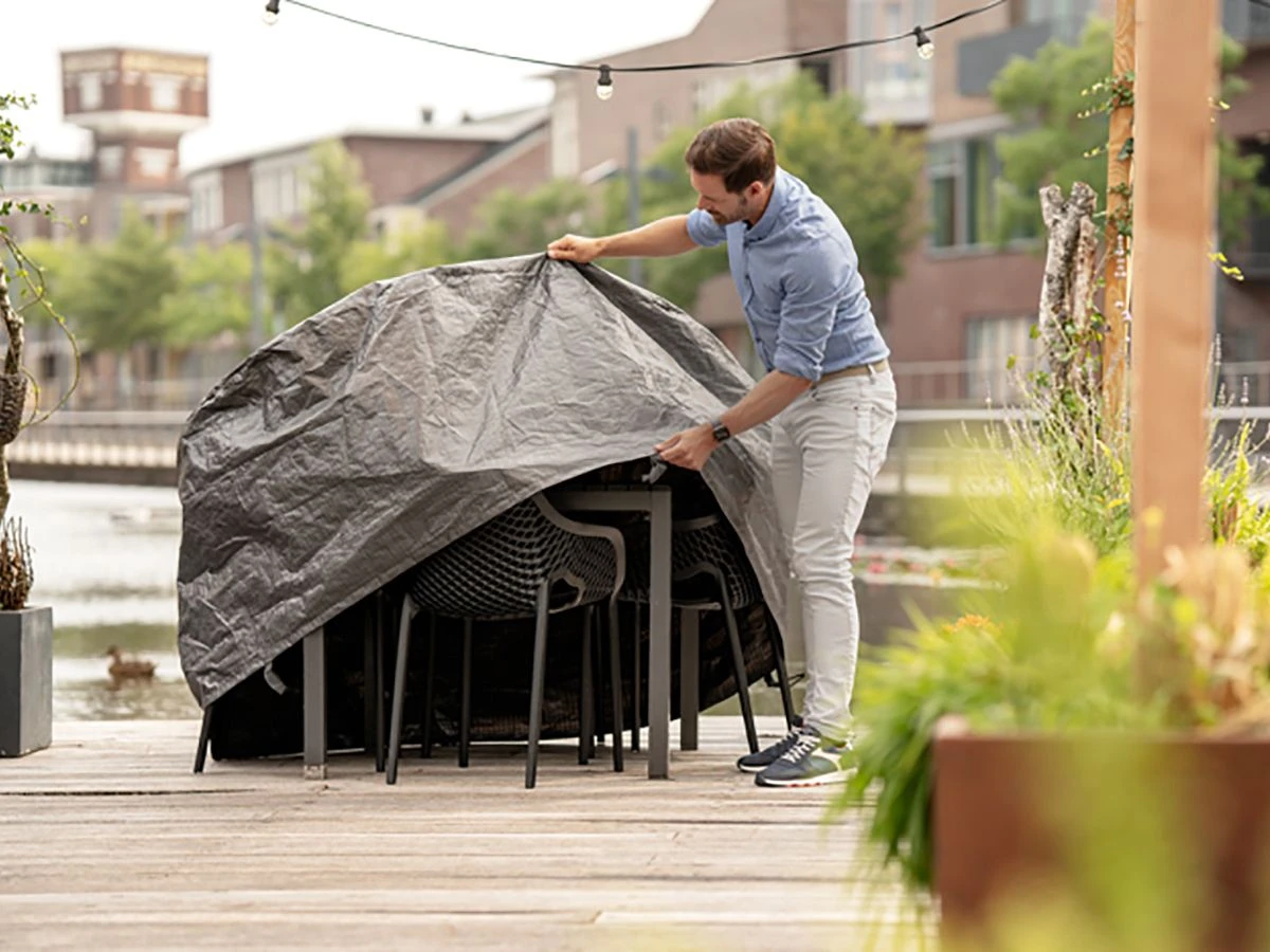 Let op: bij het gebruik van een hoes moeten de meubels goed droog zijn en kunnen ventileren. Hierdoor voorkom je dat de meubels beschadigd raken of gaan schimmelen door vocht.