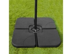 Het hangende ontwerpen van de parasol zorgt ervoor dat u van de gehele schaduwplek kunt genieten zonder dat de basis van de parasol in de weg staat. U hoeft de bijgeleverde tegel enkel nog te vullen met zand of water.